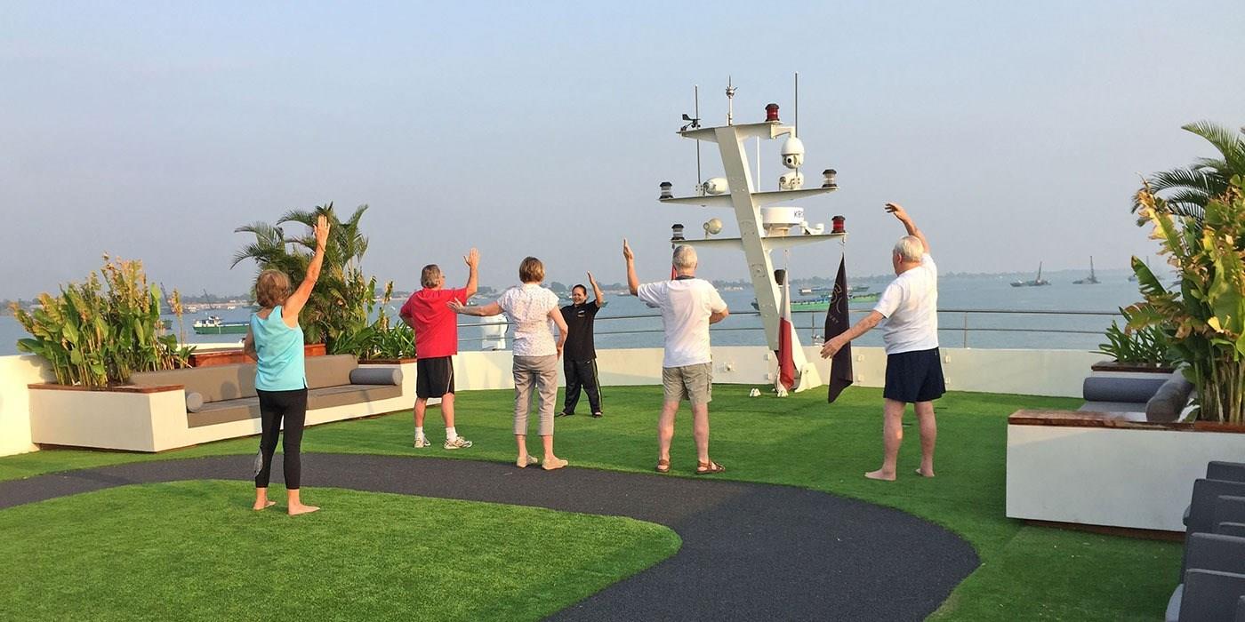 The Wellness Team on Scenic Spirit can support you in maintaining your wellbeing and fitness goals, and can guide you with morning Tai Chi or walking on the Sun Deck. Iron out your travel weariness with a relaxing treatment* at the spa, including a deep tissue Khmer massage or foot reflexology.